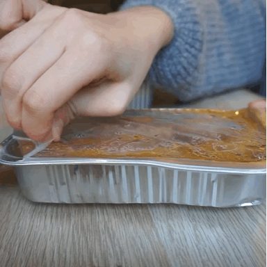 ding~漫長的十分鐘終于過去了,撕開包裝盒,水蒸氣里凝結著醬汁,一股子麻辣鮮香撲面而來。
