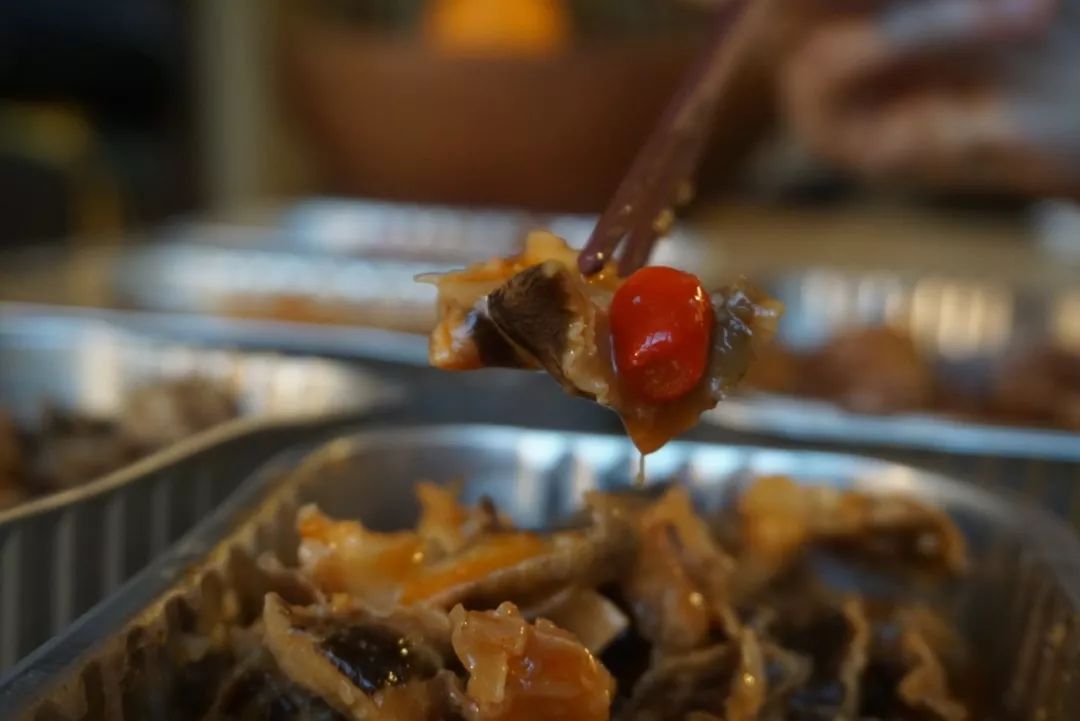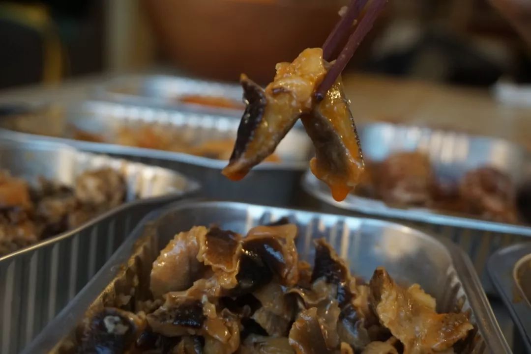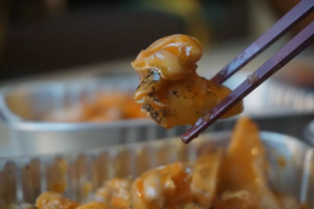 本場測評的最后一款黃金鮑肉,本來大家已經吃的半飽了,但嘗了一口后紛紛又把筷子伸向了碗里。